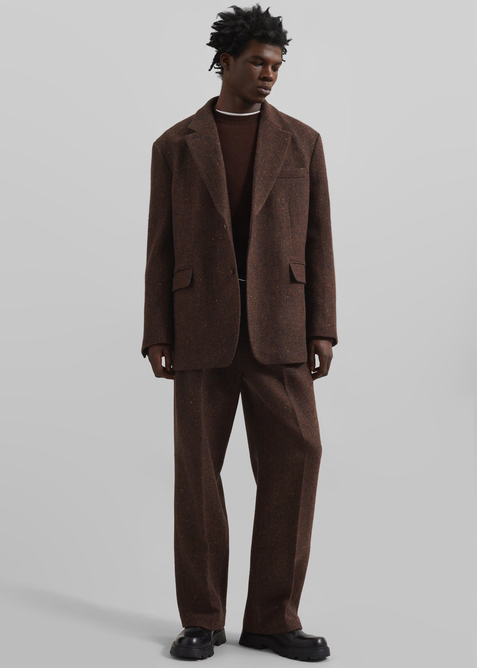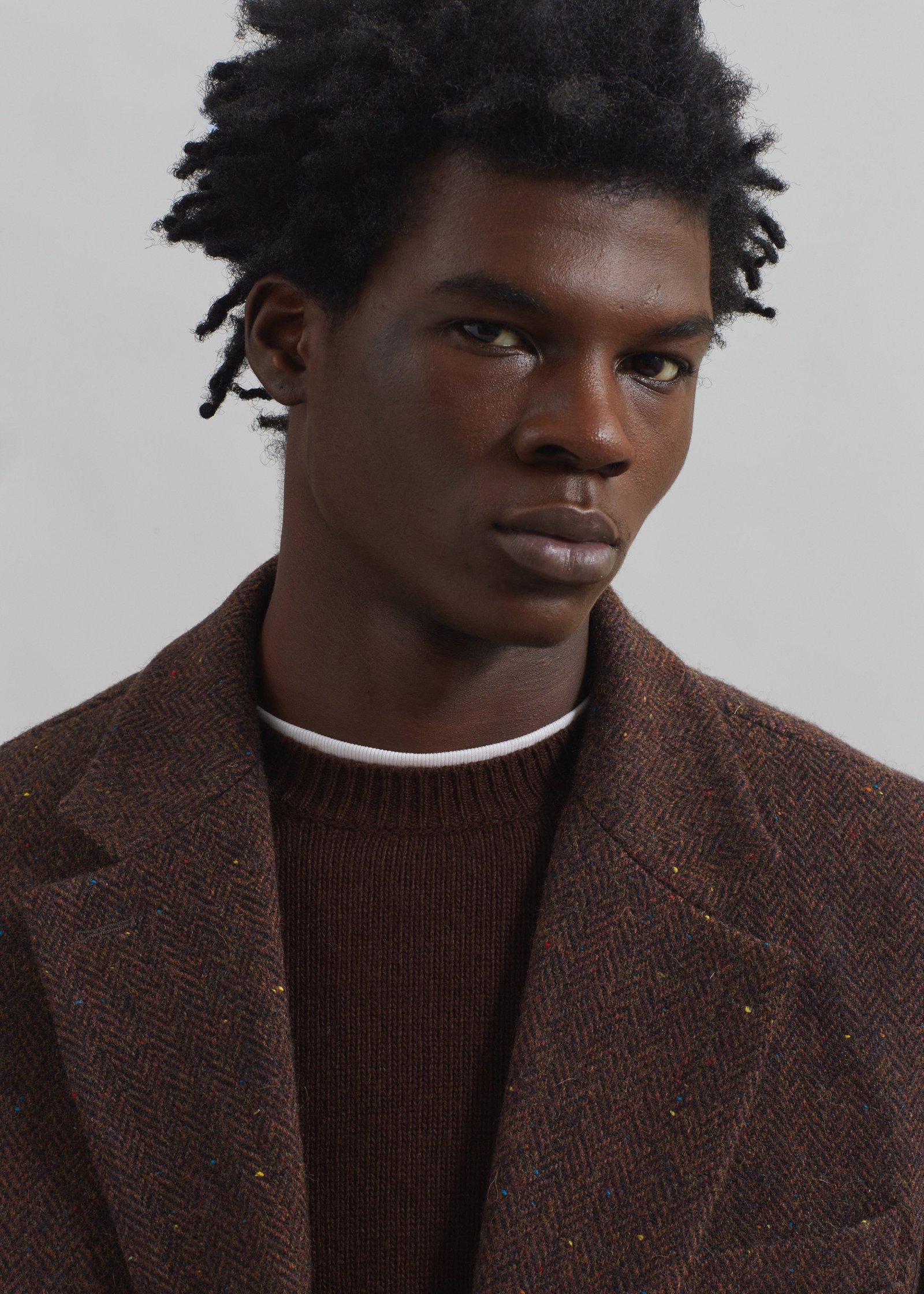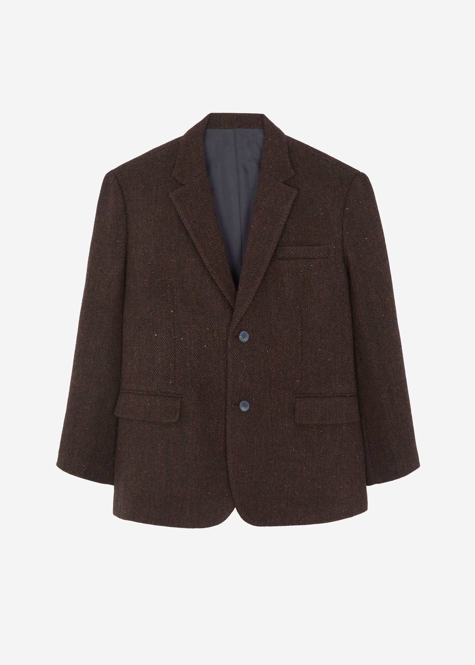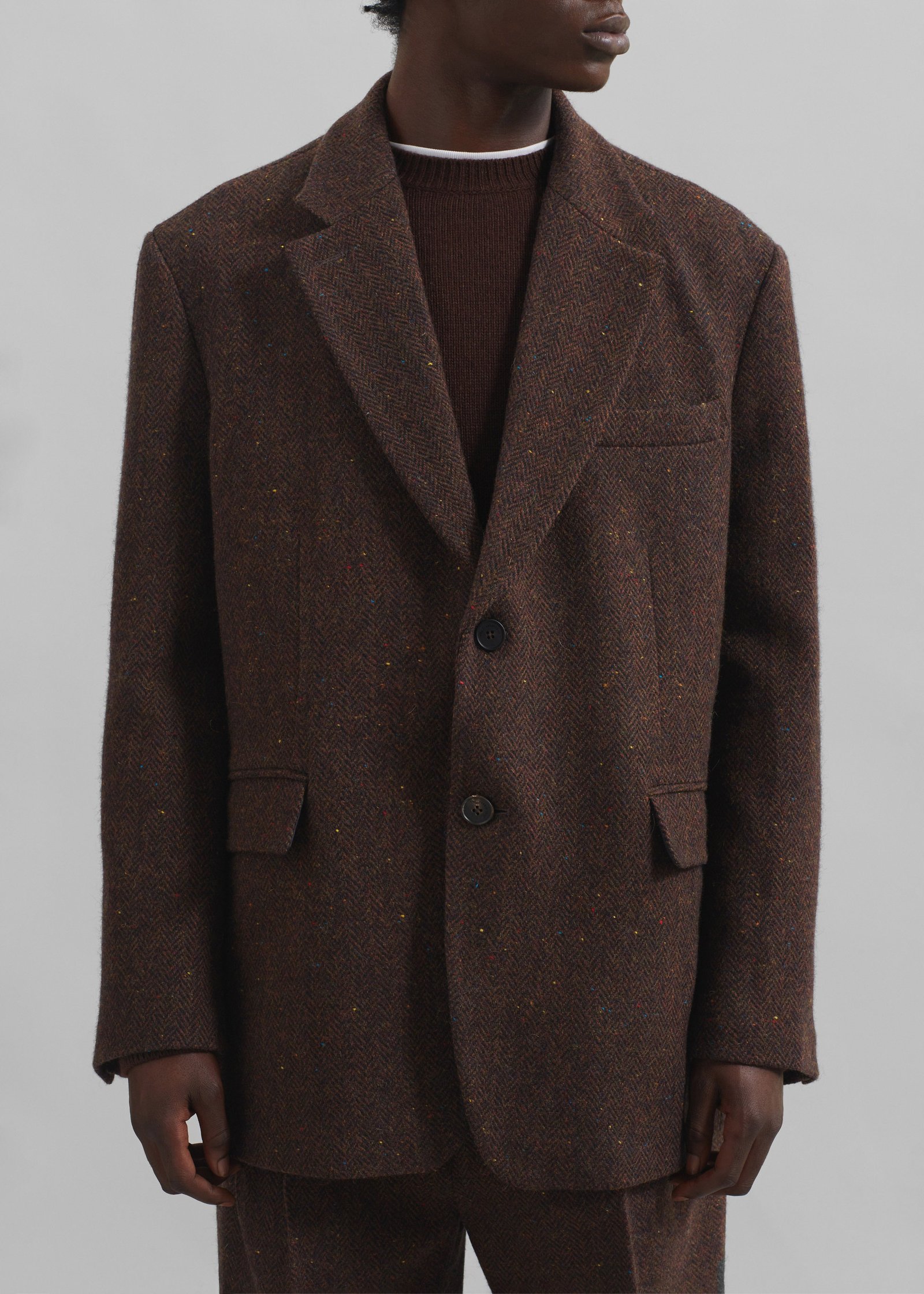 Herringbone tweed wool fabric with multicolored neps
